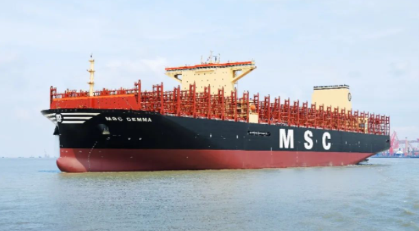 5月22日,中國船舶集團(tuán)旗下滬東中華聯(lián)合中船貿(mào)易為工銀金融租賃有限責(zé)任公司和瑞士地中海航運(yùn)公司(MSC)建造的全球最大級別24116TEU超大型集裝箱船系列3號船“地中海 吉瑪”號(MSC GEMMA),在中船長興造船基地命名交付。這不僅是滬東中華在短短75天時間里完工交付的第3艘同系列船,進(jìn)一步穩(wěn)固了其世界超大型集裝箱船建造領(lǐng)域的領(lǐng)軍地位,也成就了MSC成為全球第一家運(yùn)力突破500萬TEU大關(guān)的集裝箱航運(yùn)公司。