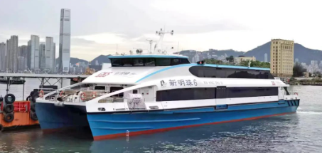 8月8日,中國香港新渡輪500客位混合動(dòng)力噴水推進(jìn)碳纖維高速船“新明珠6”號在廣州舉行交船儀式。該船由中國船舶集團(tuán)廣州公司批量承接,是中國香港首艘碳纖維混合動(dòng)力高速客船,廣州公司總承包了該項(xiàng)目的11艘船舶。