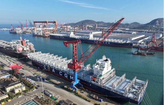 12月3日,中國船舶集團青島北海造船與中船貿易作為聯合賣方,為達飛海運建造的系列5500TEU集裝箱船“CMA CGM KAURI”號舉行命名交付儀式。該船是北海造船交付的第8艘5500TEU集裝箱船,也是北海造船年度交付的第19艘船。
